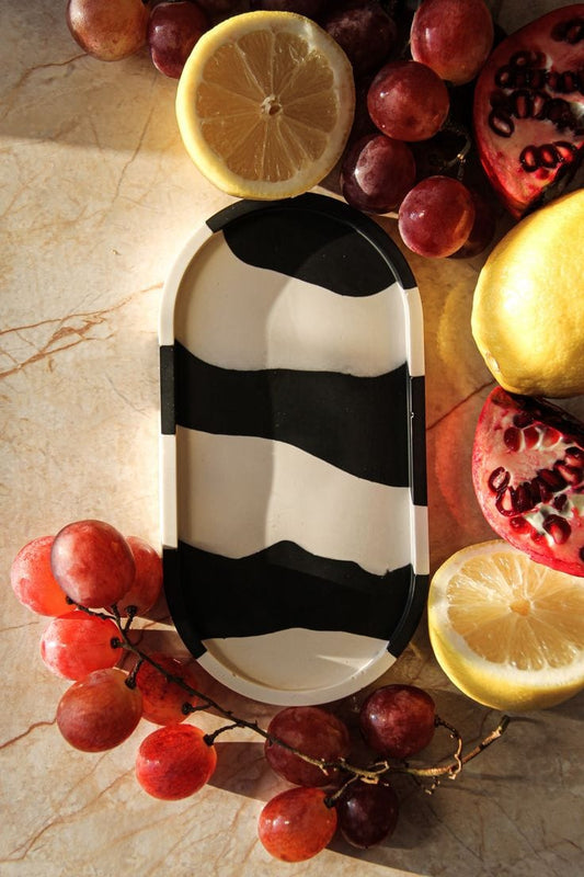 “Luxora Black & White Decorative Tray with Pen Holder”